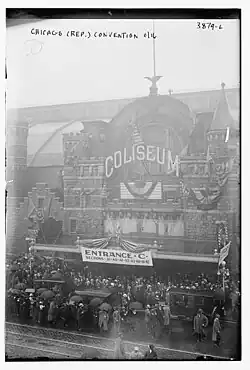 A décima-sexta Convenção Nacional Republicana (Republican Party) de 1916 foi realizada entre 7 e 10 de junho em Chicago. Um dos principais objetivos dos chefes do partido na convenção foi para curar a divisão amarga dentro do partido que havia ocorrido na campanha presidencial de 1912. Naquele ano, Theodore Roosevelt fechou a GOP (o Partido Republicano também é conhecido como Grand Old Party, ou seja, Grande Velho Partido) e formou seu próprio partido político, o Partido Progressivo, que continha a maioria dos liberais do Partido Republicano. William Howard Taft, o presidente em exercício, ganhou a nomeação regular do Partido Republicano. Essa divisão nas fileiras do Partido Republicano dividiu o voto republicano e levou à eleição do democrata Woodrow Wilson. Apesar de que vários candidatos foram abertamente concorrentes para a nomeação 1916, - o mais proeminente foi o senador conservador Elihu Root e o senador liberal John W. Weeks - os chefes do partido queriam um moderado que seria aceitável para ambas as facções do partido. Eles se voltaram para o juiz da Suprema Corte de Justiça, Charles Evans Hughes, que tinha servido na corte desde 1910 e, portanto, tinha a vantagem de não ter falado publicamente sobre questões políticas em seis anos. Hughes ganhou a nomeação no terceiro escrutínio com 950 votos. O ex-vice-presidente Charles W. Fairbanks foi nomeado como seu companheiro de chapa.[4]