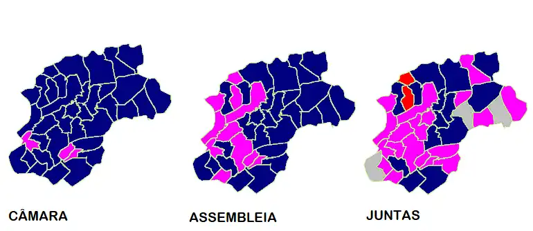 | 29-09-2013 | Autárquicas | 32,8 | 4 | 46,7 (6) | 6 | 8,8 | 1 | 5,3 | 0 | 1,4 | 0 | 13,9 |