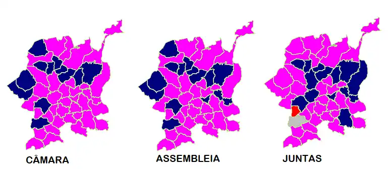 Os resultados para os diferentes órgãos do poder local no Concelho de Guimarães foram os seguintes[6][7]: