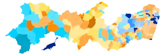 Candidato mais votado por município no 1.º turno (185):
