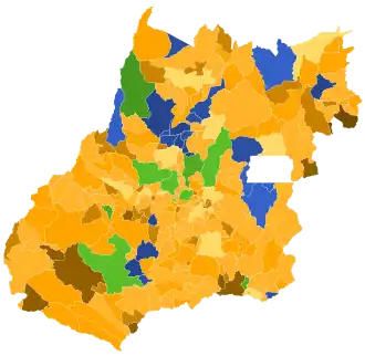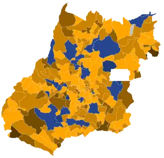 ![]() Candidato mais votado por município no 2º turno (232): Maguito Vilela (199) ![]() Candidato mais votado por municípios no 1º Turno (232): Maguito Vilela (199)