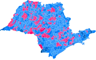 - ↑ Em relação ao governador eleito Mário Covas, do Partido da Social Democracia Brasileira, no momento da divulgação dos resultados.