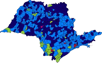![]() Candidato mais votado por município no 1º turno (625): Mário Covas (525)