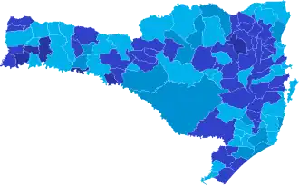 Os números a seguir têm por fonte os arquivos do Tribunal Superior Eleitoral e do Tribunal Regional Eleitoral de Santa Catarina. Houve 13.364 votos em branco e 7.152 votos nulos.[1]