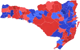 Os números a seguir têm por fonte os arquivos do Tribunal Superior Eleitoral e do Tribunal Regional Eleitoral de Santa Catarina. Houve 44.327 votos em branco e 9.288 votos nulos.[1]
