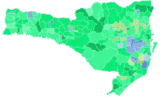 Segundo o Tribunal Regional Eleitoral de Santa Catarina houve 348.076 votos em branco (19,35%) e 75.736 votos nulos (4,21%), calculados sobre o comparecimento de 2.222.495 eleitores com os 1.798.683 votos nominais assim distribuídos:
