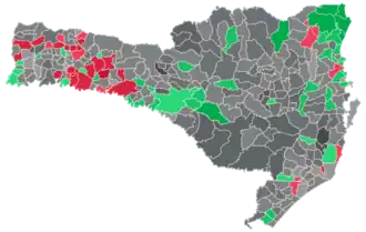 ![]() Resultado da eleição por município no 2.º turno