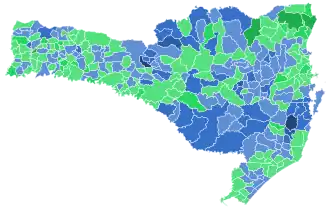 - ↑ Em relação ao governador eleito Luiz Henrique da Silveira, do Partido do Movimento Democrático Brasileiro, no momento da divulgação dos resultados.