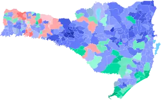 - ↑ Antídio Lunelli (MDB) com 5,5%, Dário Berger (PSB) com 4,7%.