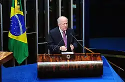 - ↑ Embora a constituição afirme que cada senador deva ser eleito com dois suplentes (Art. 46 § 3º), mencionamos apenas o primeiro sem prejuízo de citar o outro quando necessário.