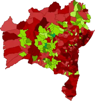 - ↑ Em relação ao governador eleito Waldir Pires, do Partido do Movimento Democrático Brasileiro, no momento da divulgação dos resultados.