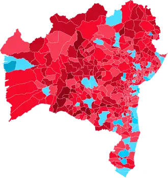- ↑ Em relação ao governador eleito Jerônimo Rodrigues, do Partido dos Trabalhadores, no momento da divulgação dos resultados.
