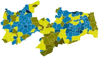 | Candidato mais votado por município no 2º turno (223): Ricardo Coutinho (117) Cassio Cunha Lima (106)