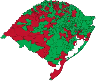 Eleição para governador do Rio Grande do Sul - segundo turno Partido Candidato Votos Votos (%) PT Olívio Dutra 2 844 767 50,78%PMDB Antônio Britto 2 757 401 49,22%Totais 5 602 168