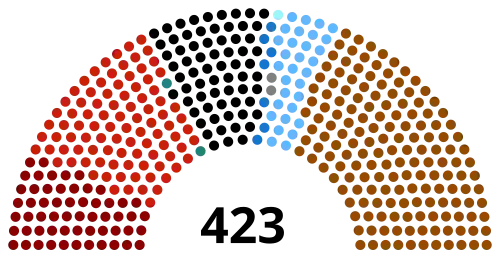 | Partido | Votos | % | Balanço | Assentos | +/– | |