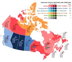 - ↑ Canada, Elections. «Election Night Results - National». enr.elections.ca. Consultado em 22 de outubro de 2019