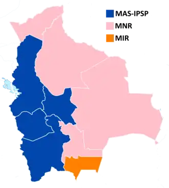 | Vencedor em | Santa Cruz Chuquisaca Beni Pando |