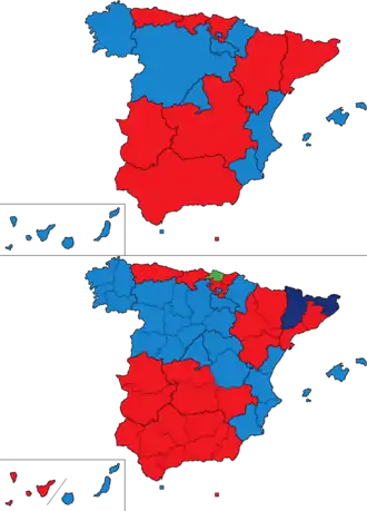 | Comunidade autónoma | % | D | % | D | % | D | % | D | % | D | % | D | % | D | % | D | % | D | % | D | % | D | D | Votantes |