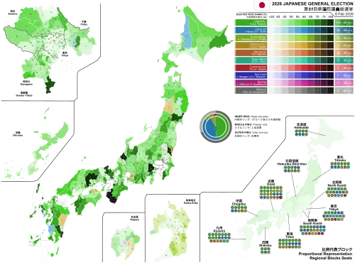 - ↑ Tajima, Nobuhiko (February 8, 2026). «Voter turnout estimated at 55.68%; early voting hits high». The Asahi Shimbun. Consultado em February 8, 2026 Verifique data em: