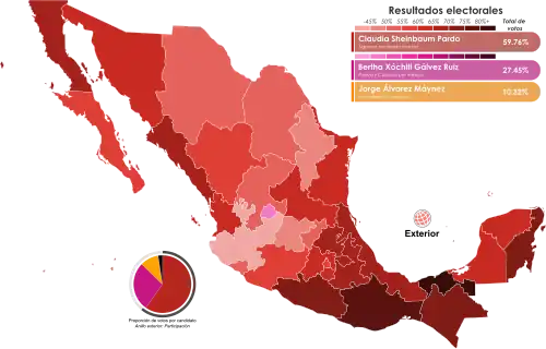 - ↑ «Eleições no México: boca de urna dá vitória para Claudia Sheinbaum, que será a primeira presidente mulher da História do país». AFP. O Globo. 3 de junho de 2024. Consultado em 3 de junho de 2024