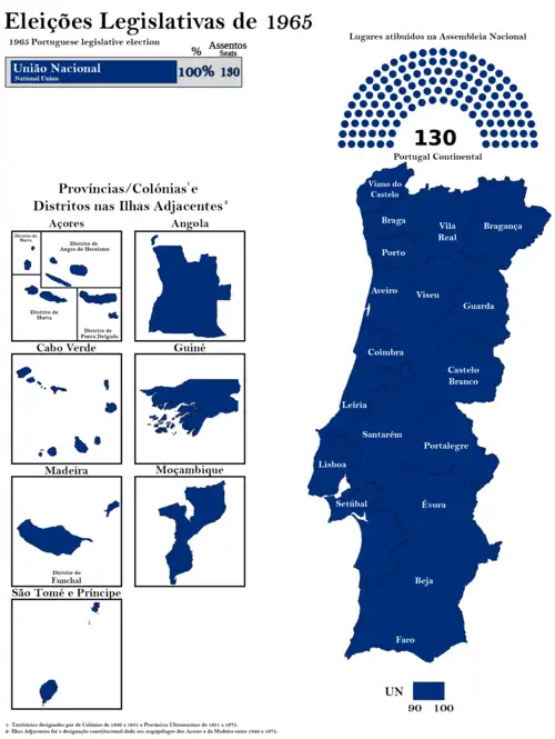 As eleições legislativas portuguesas de 1965 foram realizadas no dia 7 de Novembro, sendo eleitos os 130 deputados da Assembleia Nacional. A totalidade dos deputados eleitos pertence à União Nacional. A Oposição Democrática apresentou listas em Lisboa, Porto, Leiria, Viseu e Braga. Em Lisboa, 67,7% a favor da União Nacional. No Porto, 64%. Os trabalhos do novo Parlamento iniciaram-se em 25 de novembro de 1965 e terminaram com o fim do mandato em 1969[1].