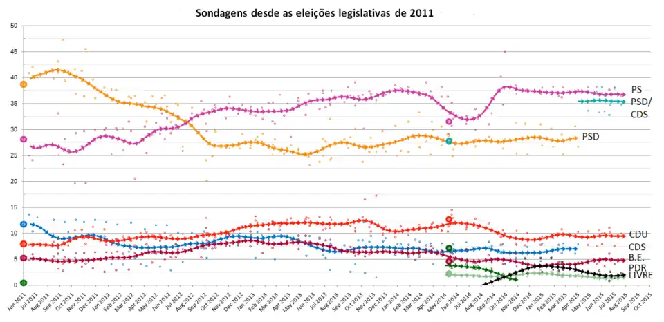 - ↑ «Legislativas 2015 - Resultados Globais». www.eleicoes.mai.gov.pt. Consultado em 8 de julho de 2016