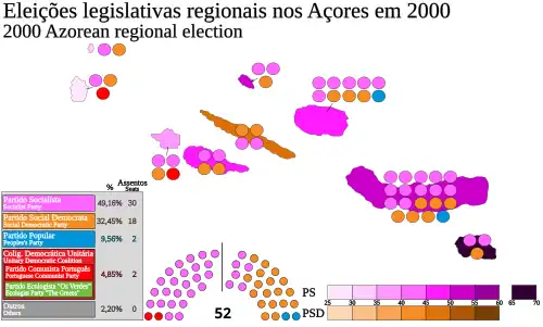 | Eleições legislativas regionais nos Açores em 2000 52 deputados na Assembleia Legislativa dos Açores | |||||||||||