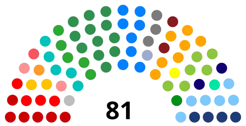 | Votos | % | Assentos | +/– | Votos | % | Assentos eleitos |
