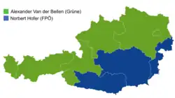 Estados onde Alexander Van der Bellen foi o mais votado Estados onde Norbert Hofer foi o mais votado | ||||