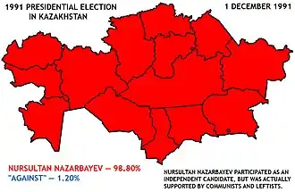 Em 24 de outubro de 1991, Nazarbayev foi registrado pela Comissão Central de Eleições para ser o candidato em exercício com seu companheiro de chapa Yerik Asanbayev.[4]
