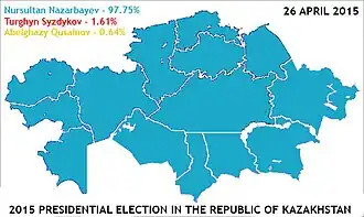 - ↑ «Н.Назарбаев назначил внеочередные выборы Президента РК на 26 апреля 2015 года – Лента новостей – Новости Казахстана, сегодня. Bnews.kz». web.archive.org. 9 de julho de 2015. Consultado em 19 de junho de 2022