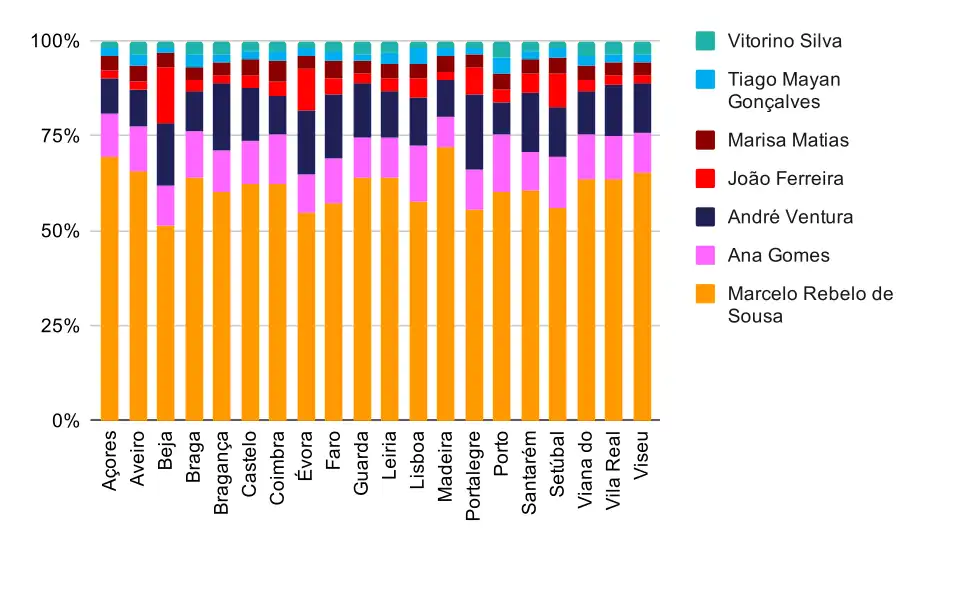 | Rebelo de Sousa | Ana Gomes | André Ventura | Marisa Matias | João Ferreira | Mayan Gonçalves | Vitorino Silva | Refs | |||||