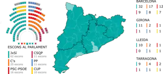 135 lugares da Generalitat da Catalunha 68 assentos necessários para maioria | ||||||||||||||||||||||||||||||||||||