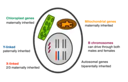 - ↑ «Why are most organelle genomes transmitted maternally?». BioEssays. 37. PMC 4305268