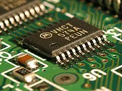 Eletrônica de estado sólido significa eletrônica de semicondutores, ou seja, equipamentos eletrônicos usando dispositivos semicondutores, como transistores, diodos e circuitos integrados (CIs).[1][2][3][4][5] O termo também é usado para dispositivos nos quais os eletrônicos semicondutores que não possuem partes móveis substituem dispositivos com partes móveis, como o relé de estado sólido, no qual comutadores de transistor são usados no lugar de um relé eletromecânico de braço móvel ou a unidade de estado sólido (SSD), um tipo de memória semicondutora usada em computadores para substituir unidades de disco rígido, que armazenam dados em um disco rotativo.[6]