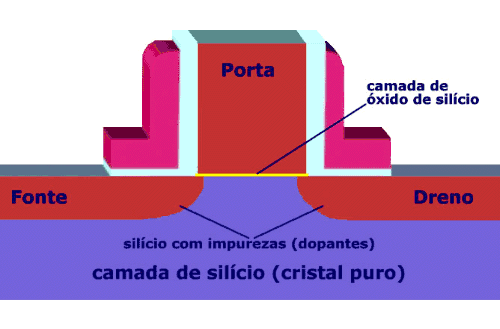A construção de Transistores com moléculas é um dos grandes objetivos dos grupos de pesquisa, pois, a miniaturização ao nível da dimensão de moléculas e até átomos vai permitir aumento significativo no número de transistores por chip, levando a maior poder de processamento. Os Transistores são responsáveis pelo chaveamento e pela amplificação de sinais. A origem da palavra Transistor vem de Transfer Resistor (Resistor de Transferência). Os transistores tradicionais são feitos de Silício, material semicondutor, que pode ser dopado, isto é, receber impurezas de outro semicondutor podendo virar um semicondutor de tipo p ou do tipo n. O transistor é dividido em Base (ou Porta), Emissor (ou Fonte) e Coletor (ou Dreno). A fonte vai emitir os elétrons e o dreno, recebê-los, se houver uma diferença de potencial na porta; senão, não há passagem de corrente.
