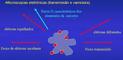 A técnica de SEM é outra técnica de microscopia com elétrons que usa um feixe de alta energia para buscar características sobre o relevo da superfície, sua composição e condutividade. Os sinais analisados na SEM são elétrons emitidos, raios-X característicos, luz, corrente e elétrons transmitidos.