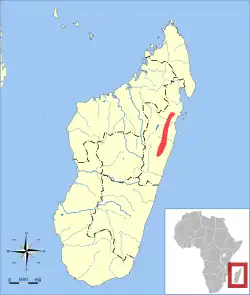É endêmica do leste de Madagascar, onde é encontrada somente na província de Toamasina.