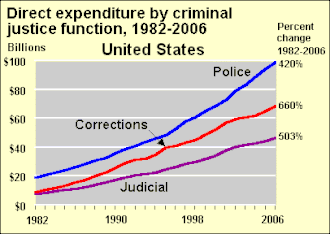 A pesquisadora Valerie Jenness observa que, "desde a década de 1970, na última onda de expansão do sistema prisional, houve um grande crescimento das prisões em níveis federal e estadual. Atualmente, as prisões estão se tornando uma indústria privada, com um número crescente de instituições privatizadas, em vez de serem controladas pelo governo."[22]