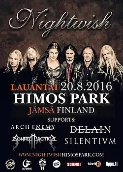 | 20 de agosto de 2016[ag] | Jämsä | Finlândia | Himos Areena | Arch Enemy Sonata Arctica Delain Silentium |