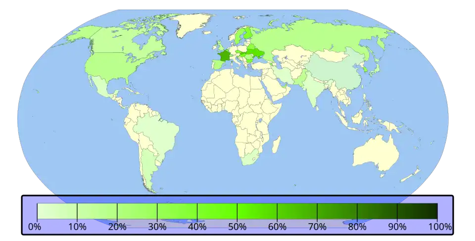 Países pela porcentagem de energia elétrica produzida por energia nuclear