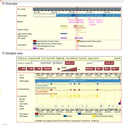Outras maneira de exibir dados em vários níveis de resolução, a partir de todo o cariótipo para baixo para texto baseado em representações de DNA e aminoácidos sequências, ou apresentar outros tipos de visualização, tais como árvores de genes similares (homólogos) através de uma variedade de espécies. Os gráficos são complementados por tabela apresenta, e, em muitos casos, os dados podem ser exportados diretamente da página em uma variedade de formatos de arquivo padrão, tais como FASTA.