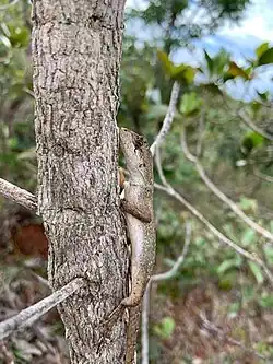 É uma espécie que prefere habitats com vegetação densa, especialmente locais com árvores e arbustos que oferecem a possibilidade de se esconder e caçar com eficácia. Esse lagarto pode ser encontrado tanto em troncos e galhos de árvores quanto no solo, mas geralmente em áreas mais sombreadas, como bordas de rios e em regiões mais úmidas do Cerrado. O comportamento arbóreo da espécie é notável, já que ela frequentemente se empoleira em galhos de árvores a uma altura de até 2 metros, utilizando-se de sua excelente camuflagem para evitar predadores.