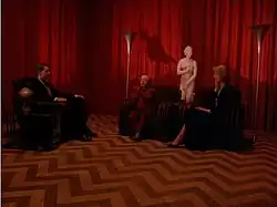 ![]() Dale Cooper tem uma visão do Homem de Outro Lugar e Laura Palmer no Black Lodge. | |||
