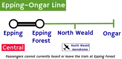 Operando aos domingos e feriados com trens da Classe 117 britânica, o serviço vai da estação Ongar até a Estação Coopersale Halt e é promovido por voluntários que cuidam da linha assim como dos trens. Já o terreno e a infraestrutura são da Epping Ongar Railway Ltd.