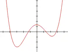 Gráfico de um polinômio do quarto grau, com quatro raízes reais distintas