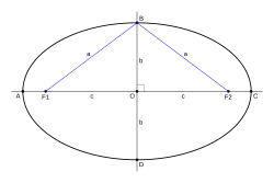 sendo (h,k) o centro da elipse e 'a' e 'b' os semi-eixos da elipse.