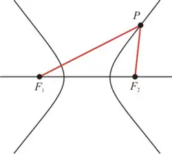 sendo (h,k) o centro da hipérbole, 'a' o semi-eixo real, isto é, metade da distância entre os ramos, e 'b' o semi-eixo imaginário.