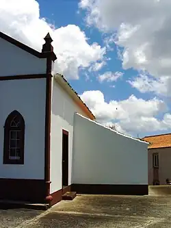 Construída em alvenaria de pedra rebocada e pintada, apresenta de planta retangular, com o corpo da sacristia adossado à lateral esquerda.
