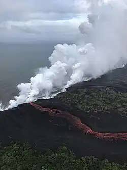 - ↑ a b «Lava crosses Highway 137 and enters the ocean in lower Puna - Hawaii Tribune-Herald». Hawaii Tribune herald. 19 de maio de 2018. Consultado em 22 de maio de 2018